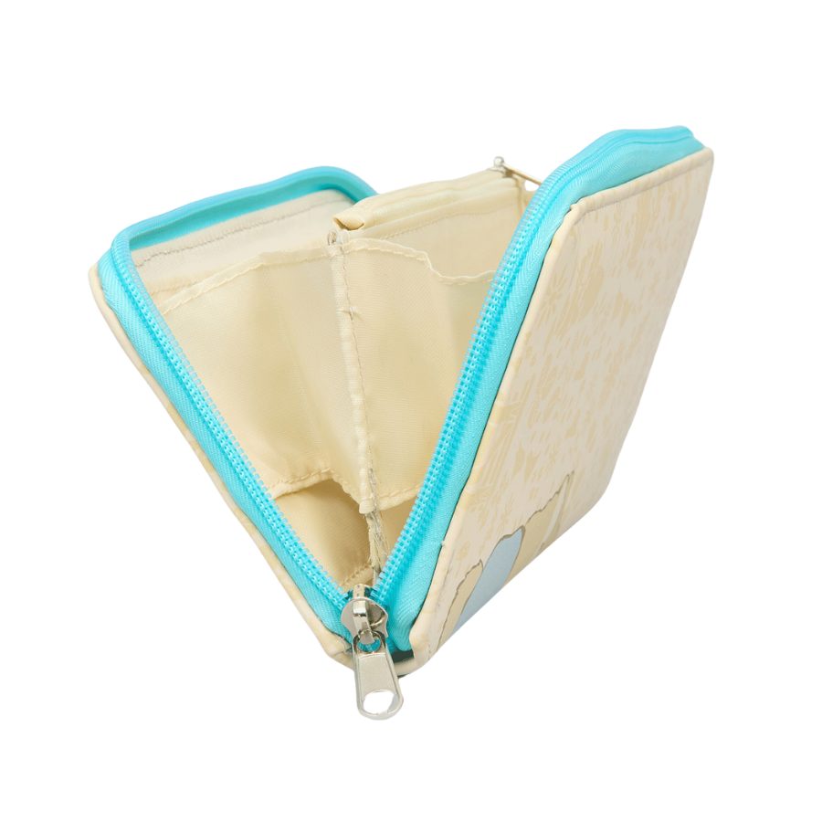 This Peter Rabbit purse has a zip compartment for coins then 2 compartments with slots for your cards.
